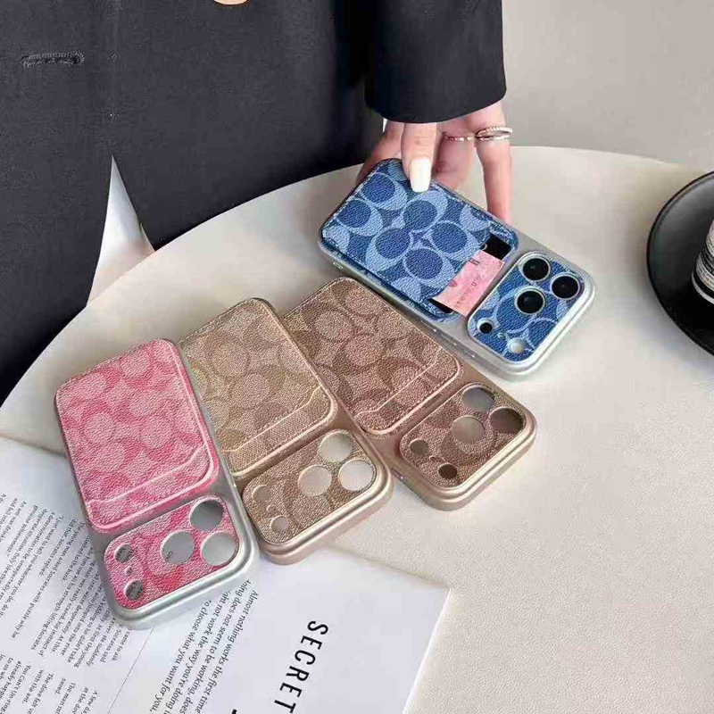 Coach コーチブランドiphone 16 17 pro 15 plus 16 pro maxケースiphone 17Pro/16/14 pro/15 pro max 16 plus カバー ストラップ付 カード入れiphone16 17 pro air 14 15 16 plusケースカバースタンド付きセレブ愛用全機種対応ハイブランドケース パロディ