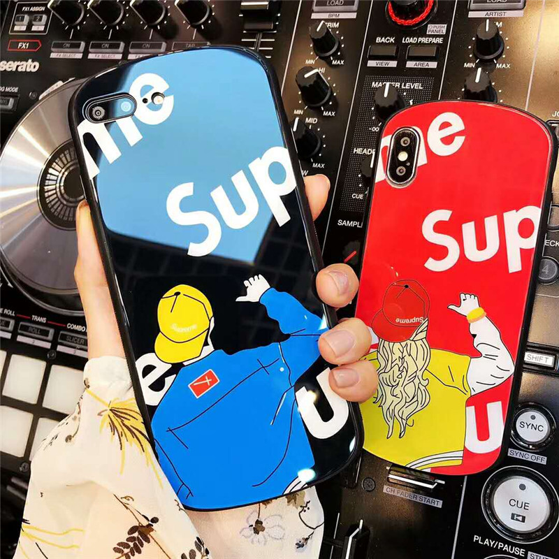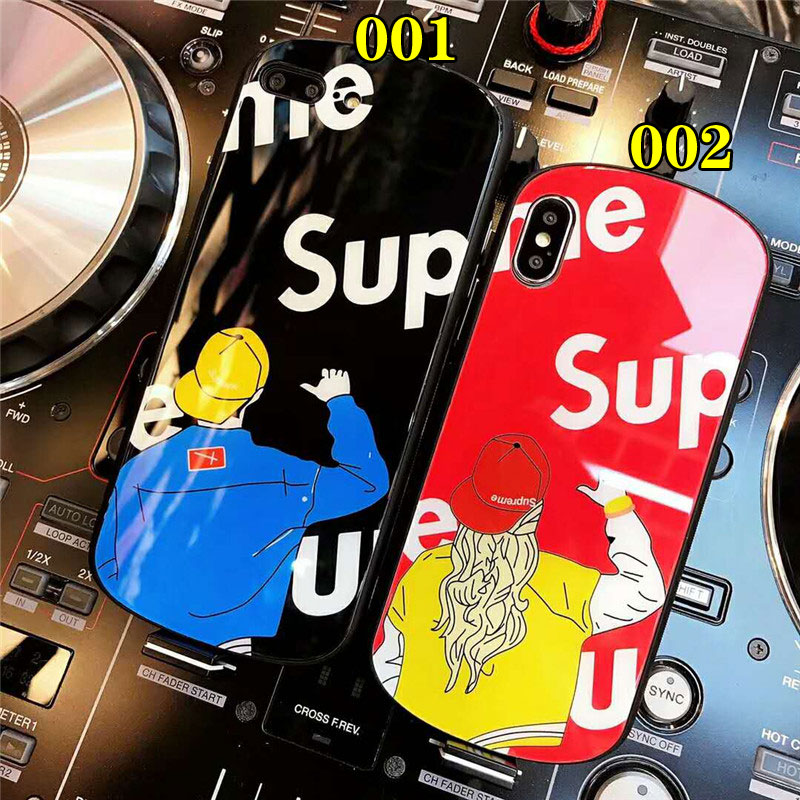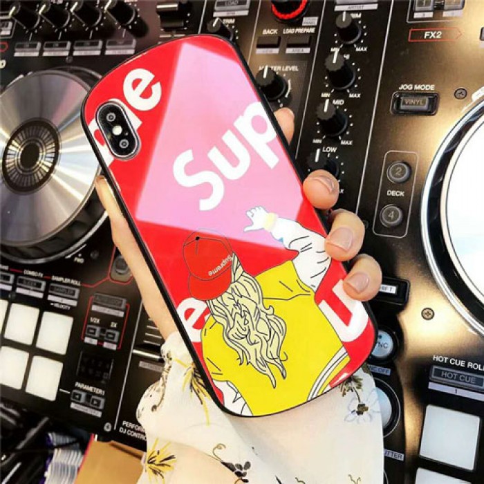 supreme シュプリーム iphone xr/xs maxケース 潮流ガラス表面iphone x/se2/8 plusスマホケース 曲だったiphone 7/6s plusカバーファッションオシャレ